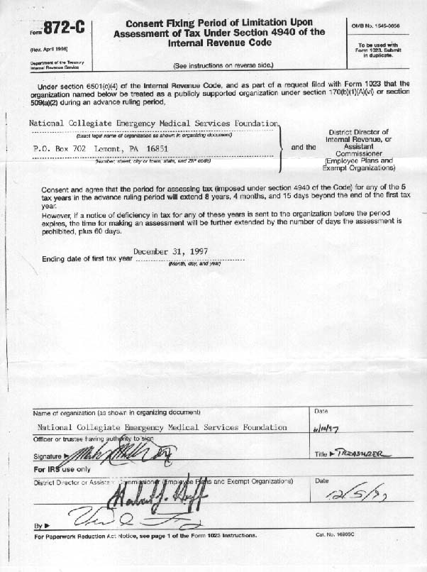 The National Collegiage EMS Foundation is a 501(c)(3) non-profit with a federal tax ID of 25-1789953 and a DUNS number of 06-968-7154. Commonly-requested documentation to verify tax-exempt status or to register NCEMSF as a vendor with your institution or organization is below. Please note that per IRS policy, forms do not need to be updated to the current calendar year; past versions of the form should be accepted so long as the IRS has not added any new fields to the form that apply to NCEMSF.